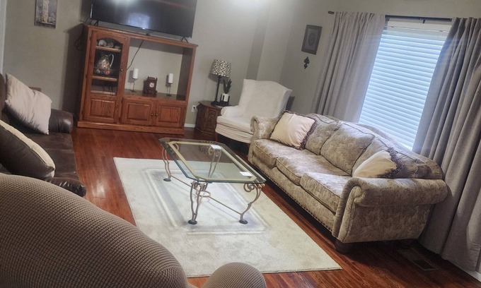 Get ready to relax in this 3-bedroom house in Melbourne. Our "Knob Creek" house is a charming property offering a superb retreat for guests looking to unwind and enjoy their vacation. We are nestled within 30min of Mountain View with music on the square and White River, 30 min of Norfork Lake, and just 45min from Spring River! With 1 queen bed, 1 full bed and 2 twin beds, you'll have a marvelous night's sleep. The house features convenient amenities like WiFi, 65 in smart tv, a washing machine and dryer, iron, and central heat and air. The bathroom is equipped with a refreshing shower containing built in shower seats, hair dryer, complimentary shampoo and conditioner. We offer a keyless entry. We also have a patio room and deck at the back of the house to enjoy evenings and early mornings! Feel free to reach out to us during your stay - we're happy to suggest local spots to check out.