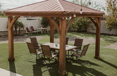 Welcome to Calimesa, cozy single story 3-bedroom 2 bathroom home. This home includes a fully equipped kitchen, open concept living room and white linen on all beds. Guests will enjoy the outdoor space as it includes a mini golf course and beautiful gazebo with comfortable patio furniture. Great outdoor space for grilling! This home includes double driveway and street parking.
