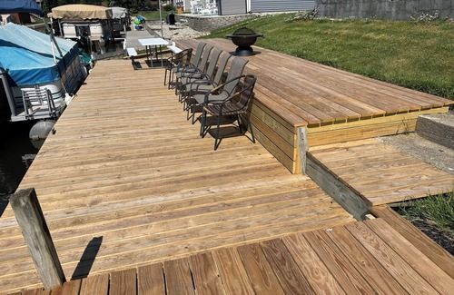 Your home away from home in Angola with 3 lovely bedrooms. This pleasant house features 2 queen beds and 1 full bed, perfect for a tranquil night's sleep. Enjoy the convenience of a washing machine and dryer, AC, and WiFi during your stay. The 2 bathrooms offer a bathtub and shower for your comfort. Private dock for your personal boat. Walking distances to Crooked Lake boat launch and public beach. Channel does go to Crooked Lake. Gas grill and all cooking necessities on site. Fantastic deck that overlooks the water with fire pit. We look forward to welcoming you to our place.