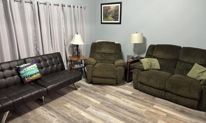 The whole group will enjoy easy access to everything from this centrally located place in downtown Huntingdon walking distance to Juniata college and the hospital. About 15 minutes from Raystown Lake, 30 minutes to State College, & 45 minutes to Altoona. 65 inch smart TV with Netflix, Amazon Prime, Hulu in the living room. Free high speed wifi. Free coffee and tea included. BBQ grill and many kitchen appliances. Off street parking available. Beds to sleep 6 with 1 king, 1 queen & 2 twin beds.