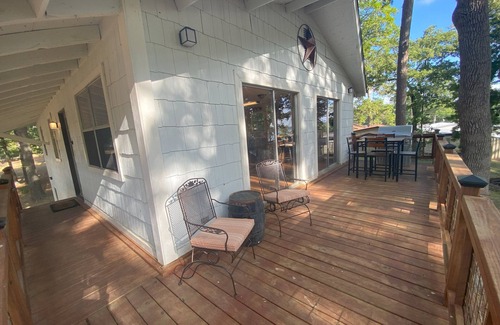 This is the ideal place for a family-friendly trip or peaceful retreat, with lots of room for fun! This rustic, 3/2 cabin (2/1 upstairs and a 1/1 in-law suite downstairs) nestled in the woods is the perfect hideaway to escape from the busy city life. Offering its guests privacy and seclusion at the lake with a large wraparound deck, indoor fireplace, BBQ grill, hammocks, and a fire pit for your enjoyment, not to mention views of Lake Livingston. **NO LOUD MUSIC OR PARTIES ALLOWED**