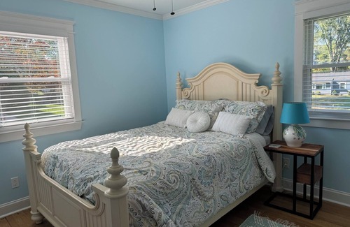 Your home away from home in Blacksburg with 3 bedrooms. This gorgeous house features 2 queen beds and 1 full bed, perfect for a peaceful getaway. Enjoy the convenience of amenities like a hair dryer, washing machine, and WiFi. With 2 bathrooms equipped with showers and hair dryers, your stay will be superb. Feel free to reach out to us during your stay - we're happy to suggest local spots to check out.