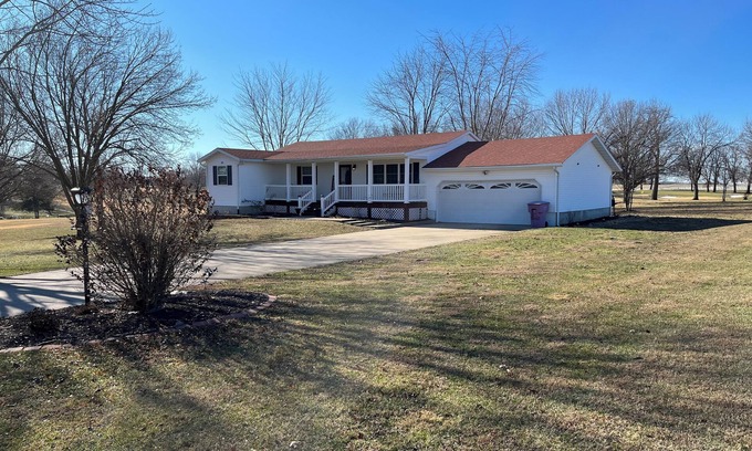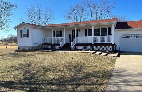 Experience New Bloomfield MO like a local in this Country style 3-bedroom house, That's sitting on 2.25 acres backed up to a golf course, very quiet beautiful scenery. The bedrooms feature 1 king bed and 2 queen beds, ensuring a nice night's sleep for all guests. With amenities like AC, WiFi, Game room, and a washer and dryer machine, your stay will be amazing. The 2 bathrooms offer a shower and bathtub, along with a hair dryer for your convenience. You're sure to make fantastic memories with a stay at our place.