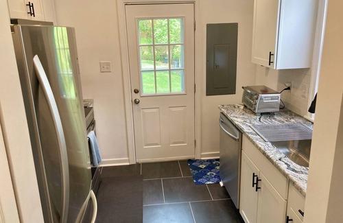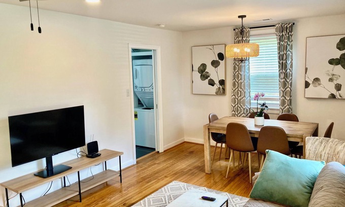 Located close 1-64, making Richmond easily accessible. The house has three bedrooms and is completely furnished. The kitchen is fully stocked with all the essentials including full sized appliances and a stacked washer/dryer. The dining table comfortably seats six. The living room is cozy. And there is a ladder desk for your laptop. The fenced backyard boasts a small rear deck. We cannot wait to host you at our Rockwood Retreat.