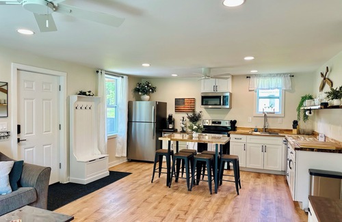 With 950 square feet of well-designed living space, our cottage comfortably sleeps 7 guests with 5 cozy beds. It’s the perfect place to unwind after a day spent exploring the great outdoors. The interior is bright, airy, and tastefully decorated, offering a clean and inviting atmosphere with all the amenities you need to feel right at home.
