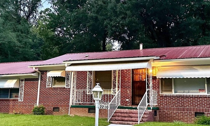 This 3 bedroom house in Tuskegee is perfect for your escape. With 3 queen beds, 2 full bathrooms, living room, and dining room, the spacious home will definitely allow for a peaceful stay. Amenities like WiFi, entry door smart locks, televisions and ceiling fans in each bedroom, dining room, living room, and a washing machine and dryer, guests will have everything they need for a marvelous stay. The central AC and heating ensures a nice and comfortable environment, while the iron comes in handy for any last-minute touch-ups. The front porch is screened in for guests who love to enjoy nature. We look forward to welcoming you to our place.