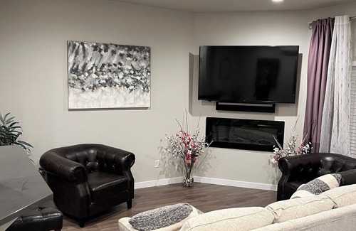 Your home away from home in Happy Valley/Boring with 3 bedrooms. This welcoming townhome features 2 king beds and 1 queen bed, perfect for a group getaway. With amenities like WiFi, AC, small fenced yard and a playground behind, and washer & dryer, guests can relax and unwind in this excellent space. Close to shopping, freeway, and Kaiser Hospital! Our place is equipped for both long or short stays to make your holiday one to remember.