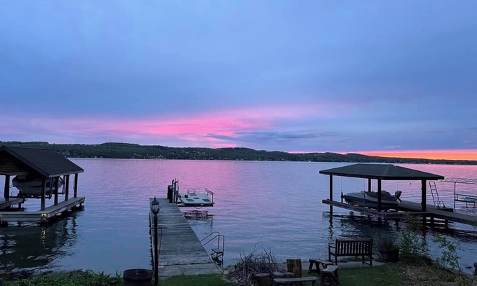 Prime location just south of downtown Canandaigua, CMAC and local foodie & craft beverage favorites are minutes away. Get ready for jaw-dropping sunsets! It’s the ideal destination for splashing your days away on the swim platform, paddleboard, canoe (3 person), 1 person kayak and 2 person kayak! Life jackets provided. Bring your boat or rent one. Or, just dangle your feet from our 60-foot dock.