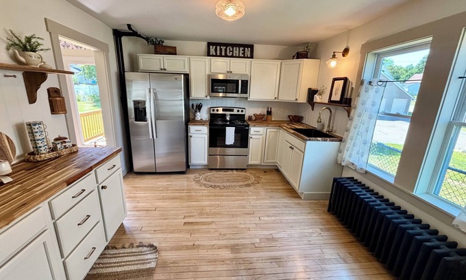 Experience Millinocket like a local in this 3-bedroom house. The bedrooms feature 1 king bed, 2 full beds, and 1 twin bed. This cool property offers heating and AC for a pleasant stay. Walking distance to the downtown and 25 minutes from Baxter State Park. We're happy to assist with any questions while you stay at our home.