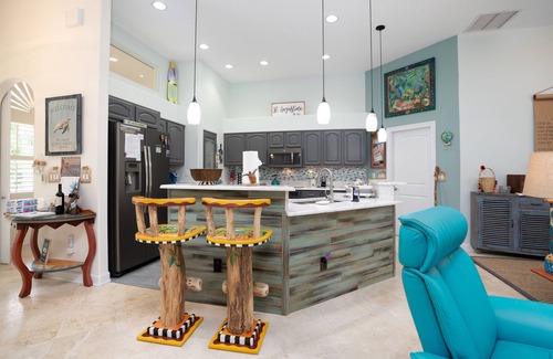 Anticipating your every need has been our mission, and over the years, we've fine-tuned every detail. As VRBO Preferred Partners and SuperHosts, our unique home features artistic touches, including hand-painted Sticks furniture, Shoestring Creations headboards, and Mackenzie Child's decor throughout. We take pride in showcasing local art, particularly with a focus on mermaids, sea horses, and sea turtles, which lend our top vacation rental its captivating theme. When you stay with us, you'll have fun counting how many of each you can spot!