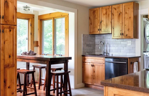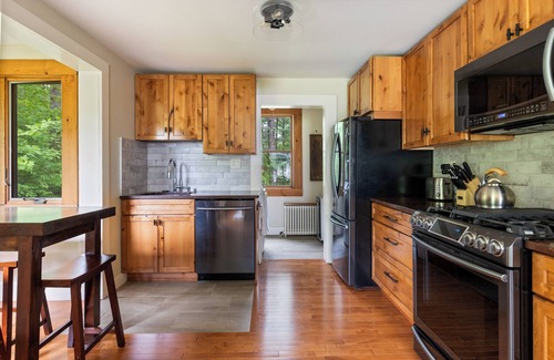 This recently renovated home maintains its Adirondack flair with comfortable furnishings throughout. The property boasts a large front porch, perfect for watching the world pass by, and a double lot that’s great for playing catch or building snowmen in the winter! The side breezeway includes a grill for your use, and off-street parking accommodates up to three cars.