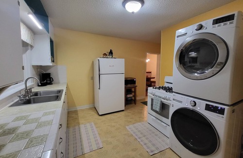 • Laundry area with washer, dryer, and supplies (in kitchen)