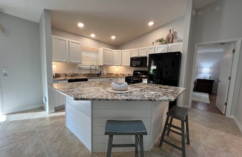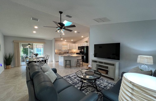 Designed for comfort and convenience, this one-level home is perfect for a relaxing stay in The Villages. The open-concept kitchen and dining area make gathering effortless, while modern touches ensure a seamless experience.