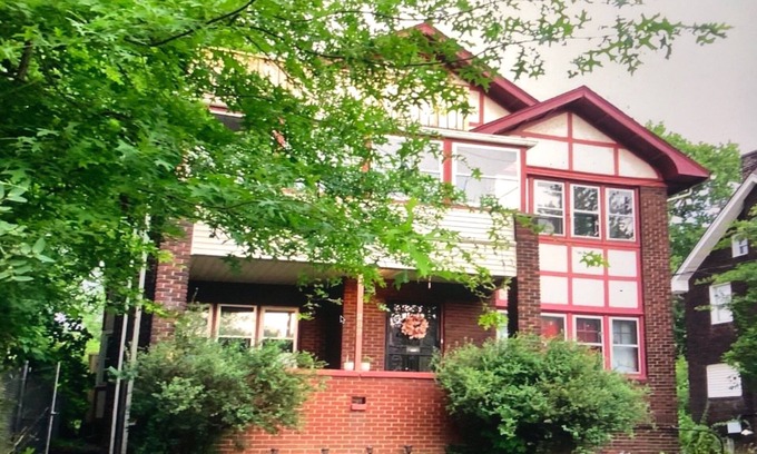 This is a 4-bedroom apartment in a Colonial house in Youngstown, Ohio. This makes this place perfect for you to escape to a serene and welcoming retreat. With 4 queen sized beds, a cozy living room with a sofa bed, a dining room to enjoy your meals, a Patio, as well as a bathroom featuring both a bathtub and shower! This brilliant property has everything you need for a comfortable stay. Enjoy the convenience of amenities like a washing/dryer, WiFi, and on premisses parking. Fall in love with Fifth Ave, with spectacular mansions and historic homes as far as the eye can see. Just a half of mile away from YSU, Stanbough Auditorium, the Covelli Center, B&O Station, Museums, Hollywood Gaming and Race Course and more!