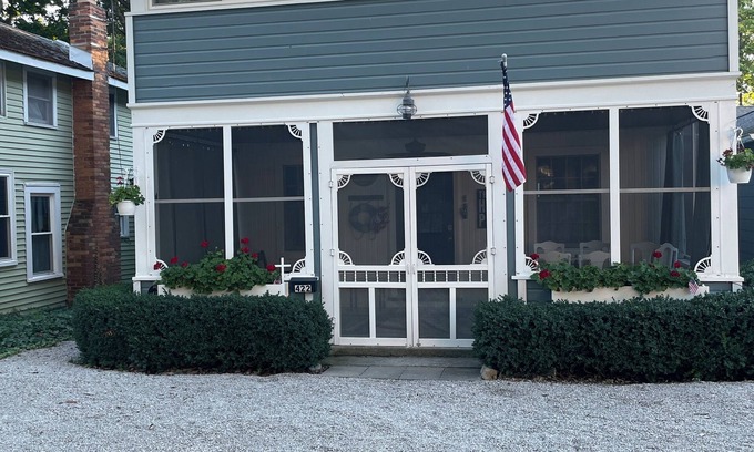 Consider this cottage your home away from home while you visit Lakeside. This pleasant retreat boasts 4 bedrooms, including 2 queen beds, 1 king bed, 2 twin beds, and 1 full bed. It also has an office for a port-a-crib. With amenities like a washing machine and dryer, AC, heating, and WiFi, guests will feel right at home. We hope you enjoy what our place and Lakeside has to offer. This cottage is a block from Hoover Auditorium, 2 blocks to the park, 3 blocks to downtown, and 4 blocks to the Aquatic Swimming Pool, There is a yard for games and a grill. Lakeside is a Chautauqua community with daily activities, art classes, shuffleboard, pickleball, tennis courts, and nightly entertainment. There is also a gate fee from Memorial Day to Labor Day, but then everything is free.
