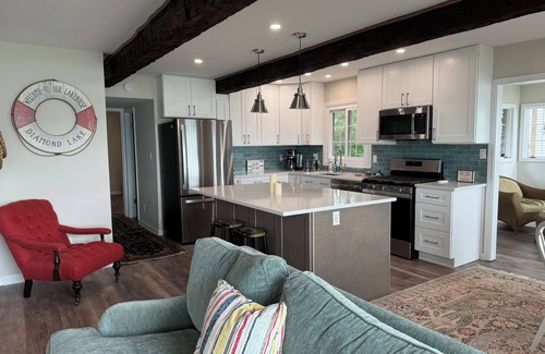 Unwind on Diamond Lake at this lovely newly remodeled cottage. Nestled in a peaceful setting, this brilliant vacation rental is the perfect escape for guests seeking tranquility. A brand new Kitchen featuring all new appliances, including a beverage cooler, and everything you will need to make the perfect summer meal. Relax in the 2 living areas with lake views. Outside enjoy the sunshine on the deck and spacious waterfront lawn. Swimming is a must with the perfect sandy beach bottom. Sleeping 13 - with 4 cozy bedrooms, including a queen bed, bunk bed, king bed, twin bed, and full bed, everyone will find their own slice of comfort. The cottage features 2 bathrooms with refreshing amenities like a shower and bathtub. Kickback, relax, and enjoy everything Diamond Lake and our cottage has to offer.