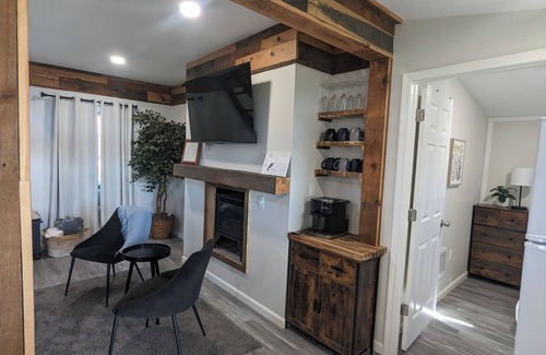 Enjoy newly renovated open-concept living with a cozy sofa, vaulted ceiling and lake views surround a dining table that seats everyone. Relax after a day of exploring. The loft is a fun place for the kids to chill-out and play games. AC, electric heaters and a gas fireplace ensure a comfortable stay, while the Wi-Fi, smart TV, and many amenities add convenience.