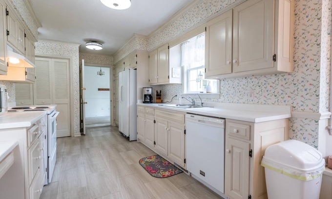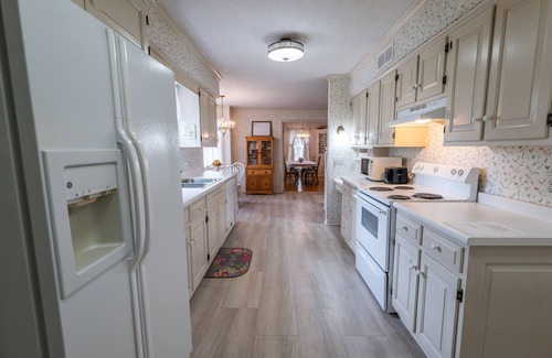 Welcome to this delightful house in Apple Creek. With 4 bedrooms including 3 queen beds, 1 full bed, and 3 twin beds, this charming property offers a peaceful retreat for guests. The living room features a cozy sofa bed for additional space. Enjoy the convenience of amenities like AC, WiFi, and a washing machine. We hope you enjoy what our place has to offer.