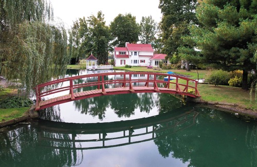 You are sure to see horse and buggies pass by on this quiet country road while you take a stroll over the bridge and feed the fish, or relax under the shade trees in the backyard.