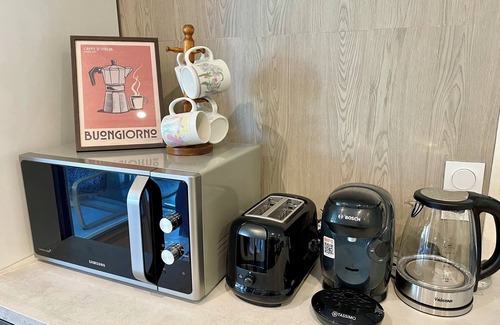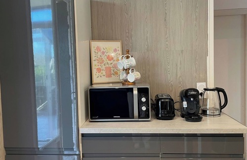 As you settle into this 4-bedroom, 2-bathroom rental, you'll find a BBQ grill and a desk. Bathroom amenities include a hair dryer, towels, and toilet paper. The kitchen is equipped with an oven, a stovetop, and a refrigerator, as well as a coffee maker, an electric kettle, and a microwave. And you won't have to pack extra clothes, because you'll have a washer and dryer, too.