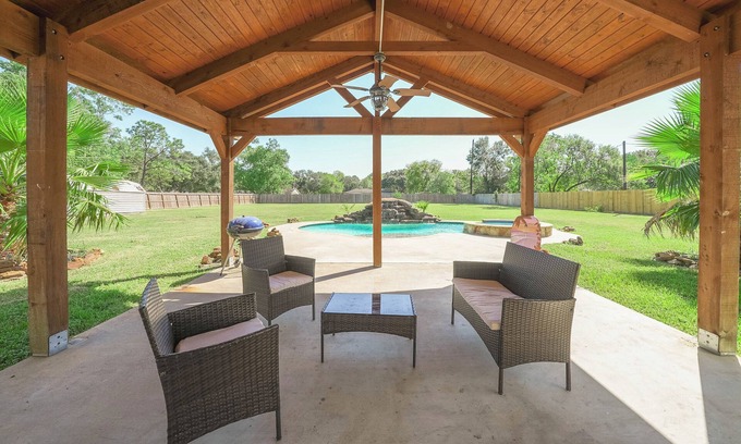 Best-rates for the Pearland house starts from $283 per night with includes Internet, Air Conditioner, Fireplace/Heating, Barbecue/Outdoor Cooking, Kitchen, Laundry, Parking, Pet Friendly, Pool, Security/Safety, Bedding/Linens, Guest Services, Child Friendly StayAndPlay offers fully equipped golf villas, golf hotels, golf resorts, luxury golf cabins, and exclusive golf retreats, making it easier than ever to find your perfect golf escape — ideal for families, peaceful getaways, or pet-friendly retreats with the whole crew.