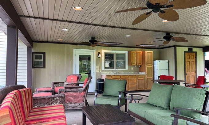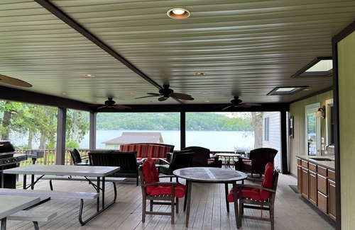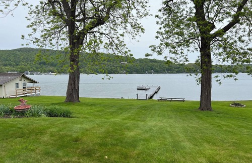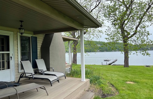 This lovely house in Branchport is a hidden gem for guests seeking a tranquil retreat. With 4 queen beds spread across 4 bedrooms, this property offers ample space for a relaxing stay. The 2 bathrooms are equipped with showers and hair dryers for your convenience. Additionally, you'll find one extra space - a cozy den with a sofa bed. Kickback, relax, and enjoy everything Branchport and our house has to offer. There is also a lakefront cottage with a queen bed, a queen futon, and 3/4 bath. The north porch has a wet kitchen with refrigerator, half bath, and BBQ grill. It has a wonderful dock and there are boat rental offices nearby.