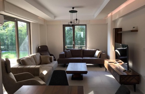 This 4-bedroom villa is perfect for your escape to Sapanca. The lovely property features 2 queen beds and 4 twin beds, ideal for families or groups of friends. With 3 bathrooms equipped with a hairdryer, you'll have all the comforts of home. Enjoy the convenience of amenities like a washing machine, heating, AC, and WiFi. We hope you enjoy what our place and Sapanca has to offer.