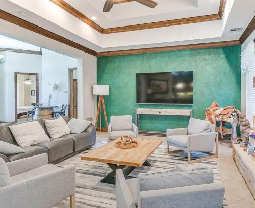 Best-rates for the Pottawatomie County house starts from $678 per night with includes Pet Friendly, Wellness Facilities, Guest Services, Child Friendly, Hot Tub, Air Conditioner, Parking, Designated Smoking Area, Security/Safety, Fireplace/Heating, Barbecue/Outdoor Cooking, Internet StayAndPlay offers fully equipped golf villas, golf hotels, golf resorts, luxury golf cabins, and exclusive golf retreats, making it easier than ever to find your perfect golf escape — ideal for families, peaceful getaways, or pet-friendly retreats with the whole crew.