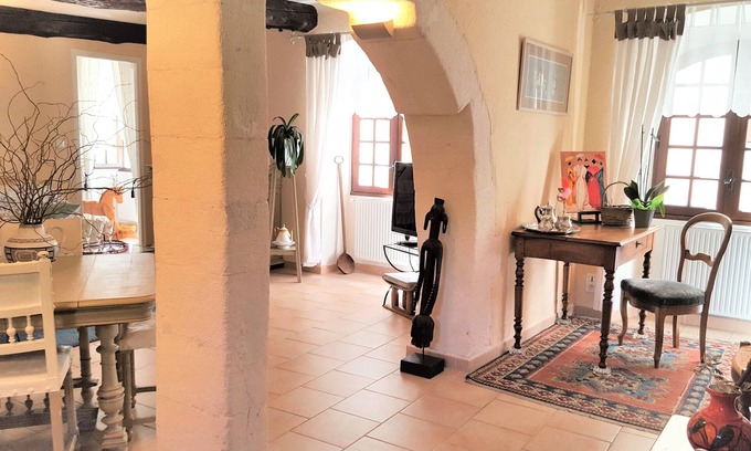 Completely renovated in a part of the former Ursuline convent (one of the first established in France in the 16th century). Located on the first floor of the building, it consists of an entrance, integrated kitchen, 2 bedrooms, one with a 160 cm bed and the other with 2 80 cm bunk beds. Bathroom, separate WC, TV, satellite dish and Canal Sat pre-installation, WIFI. Sheets and towels provided.