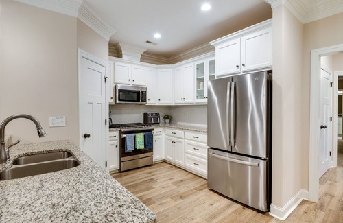 KITCHEN: Stainless steel appliances w/ dishwasher, air fryer, cooking basics, dishware/flatware, coffee maker, blender, ice maker, Crockpot, microwave, toaster, water filter