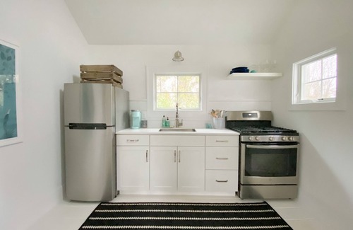 Take a deep breath when you enter this very bright and well appointed pool cottage for your home away from home. Lush backyard with the main residence and use of the private salt water, unheated pool and outdoor shower behind the cottage. Property is on a beautiful tree lined street that ends at the bay a couple houses away with a view of the nature preserve and amazing evening sky views. A 5 minute walk to the small quaint village of East Quogue for your weekend needs including bagel deli, European butcher and sandwich shop (delich!), Liquor Store, a fun indoor/outdoor TexMex Restaurant, etc. Want to hit the fabulous Hampton beaches, they are a 10 minute drive away. Closest downtown Hamptons are Hampton Bays (5 minute drive), Westhampton (our favorite ...10 minute drive) and Southampton (15 minute drive).