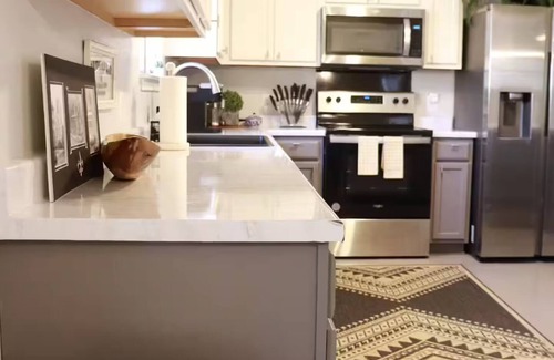 Guests will love the fully equipped kitchen, which has everything needed to prepare meals with ease, as well as modern conveniences like heating, air conditioning, and a washer and dryer, so you can pack light. For those who may need to plug in and work during their stay, the house includes two dedicated workspaces, one featuring a full monitor setup and a wireless printer, ideal for printing out last-minute tickets or itineraries.