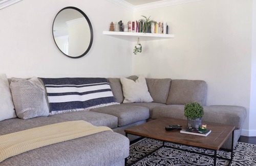 The house features three ultra-comfy bedrooms, including two with spacious king-sized beds and one with a cozy full bed, offering plenty of room for everyone to relax and unwind. With two full bathrooms, stocked with plush towels and high-end toiletries, you’ll enjoy the added convenience of a bathtub in the second bathroom. The two separate living rooms, each with large, comfortable sofas, provide ample space for movie nights or simply lounging together.
