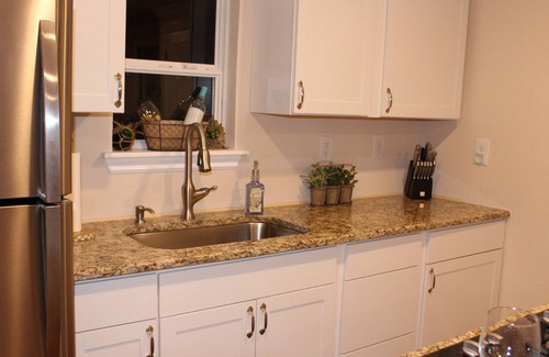 20% discount when booking 7+ days. Adorable garage apartment embracing the "country charm" and relaxed atmosphere done in farmhouse decor. It is great for a couple's getaway, or vacation on the lake. Very quite neighborhood. It is located 10 minutes from Lake Texoma. The driveway will accommodate 2 trucks, and 2 boats, with electrical hookup to charge boats. Choctaw Casino is a 20 minute drive. Completely renovated and energy efficient. The bedroom includes a plush queen size bed with plenty of room to stretch out. The kitchen is full size kitchen with all the amenities to easily prepare meals. If you don't want to cook there are many delivery options. If your looking to stay in for a quite evening, the built in fireplace will create a romantic and relaxing environment. 20% discount when you book 7+ days.