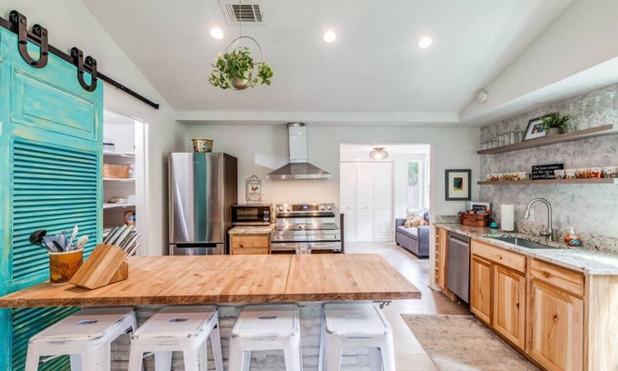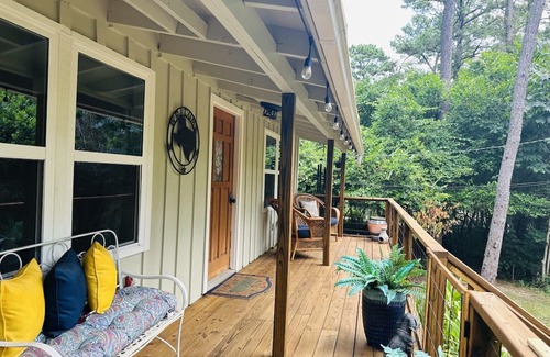 Welcome to The Happy Cottage! This little gem has been completely remodeled, and boasts 3 bedrooms, including 1 king bed, 2 queen beds, and a sun room with a love-seat size chair, that folds out into a cozy twin bed. Enjoy the beautiful, wooded views, and privacy from the large front porch with your cup of coffee or glass of wine. Located only a short drive to historic downtown Conroe, or the lake, this home is in an ideal location, only minutes to some of the best shopping and dining options within Cornoe. This home is also located just a few minutes to the Montgomery County Fairgrounds, and the regional airport. Fully furnished, including linens, cookware, and even a full-size washer/dryer, to make you feel right at home!