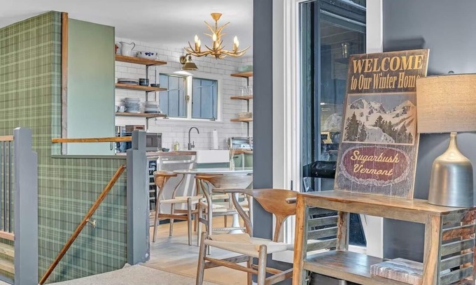 Sugarbush base condo gem: Designer Condo/fully updated in 2024/Walk to slopes, Shuttle to mountain/Great views. Newly renovated condo at the North Lynx complex with stunning Green Mountain views. Watch the sunrise rise over the Mad River Valley while having your morning coffee. This centrally located, ground-floor 2-bedroom, 2 bath Condo is conveniently located to the free shuttle to the Lincoln Peak Base (Winter only) and in a nearly ski-in / ski-out location.
