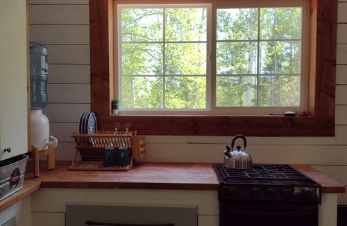 Enjoy serene North woods seclusion just two and a half miles from Grand Marais! At the end of a foot path you'll find yourself at this charming off-grid cabin set in the forests of the Lake Superior bluff. This quaint cabin is filled with windows bringing views of the surrounding woods. It features a polished/rustic interior complete with well equipped kitchen, comfortable beds, and wood stove. The hammocks, deck, campfire, and path to the nearby Fall river invite guests outside to explore!