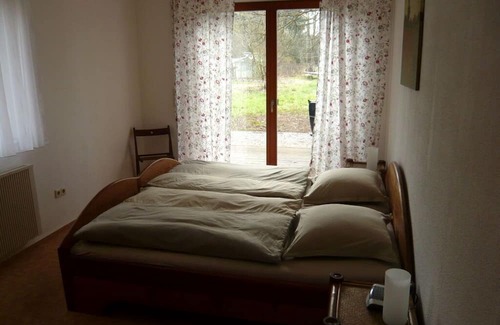 The cozy 70 sqm holiday home for 2 adults is located in the middle of a large idyllic garden. You live in the house alone! The house consists of an approximately 35 square meter living room with kitchenette, a bedroom and a bathroom with shower and toilet. All rooms and the bathroom can be reached at ground level. The south side terrace extends over the window sides of living room and bedroom.