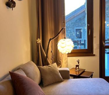 Providing a bar, Charming apartment pool, SPA, sauna, CIR VDA - AYAS - 0005- provides accommodations in Champoluc. There's a spa and wellness center at this property comprised of a sauna, a hot tub, and a steam room. There's a sun terrace and guests have access to free Wifi, free private parking, and an electric vehicle charging station. Featuring a patio and mountain views, the apartment includes 1 bedroom, a living room, cable flat-screen TV, an equipped kitchen, and 1 bathroom with a hot tub and a bidet. Towels and bed linen are offered in the apartment. Additional in-room amenities include wine or champagne. The apartment also features a pool with a view and an indoor pool for guests to relax in. An indoor play area is also available at Charming apartment pool, SPA, sauna, CIR VDA - AYAS - 0005-, while guests can also relax in the garden. Church of San Martino di Antagnod is 2.4 miles from the accommodation, while Miniera d’Oro Chamousira Brusson is 5.2 miles from the property. Torino Airport is 60 miles away.