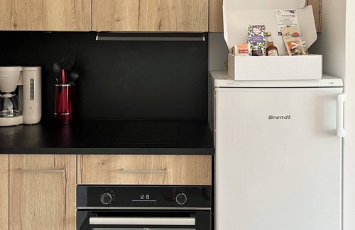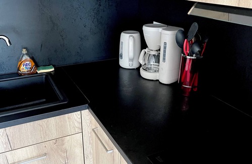 • Kitchen: Brand-new and fully equipped with induction cooktop, oven, microwave, dishwasher, extractor hood, refrigerator, coffee machine, kettle, and all necessary utensils: plates, pans, pots, cutlery, strainer, salad bowl, glasses, coffee cups, and bowls.