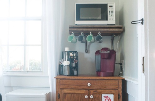 Enjoy the exclusivity of a private entrance, granting you sole access to your space. Upon entering, discover your inviting sitting room featuring a 43-inch LED TV, a sumptuously comfortable sectional couch, and a convenient kitchenette equipped with a small fridge, toaster, microwave, and Keurig Brewer with assorted K-Cups. Follow the illuminated corridor to the expansive bedroom boasting 15-foot ceilings and a lavish King-size bed with a coil-wrapped spring core and gel-infused memory foam for unparalleled comfort. Your bedroom also features a 50-inch LED TV with cable, a spacious wardrobe cabinet, and a compact writing/working desk. Transition seamlessly to the well-appointed bathroom with a cast iron tub, a shower featuring a rainfall shower head, and a stylish reclaimed vanity with a vessel sink. Please note that guests must be 12 years or older to ensure a tranquil and sophisticated atmosphere for all guests. Your stay includes a range of amenities, from plush bath towels and toiletries to a hair dryer, ensuring a truly indulgent experience. The blend of historic charm and contemporary amenities creates the ideal backdrop for a memorable stay. Wander through the cobblestone streets, explore nearby boutiques, and savor local cuisine, all just steps away. Book your escape now and let the allure of our historic home in downtown Summerville set the stage for an enchanting retreat.