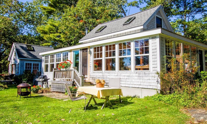 Enjoy a glimpse of the charm of Midcoast Maine at this three-bedroom Harpswell home, where you'll have an outdoor deck, a beautiful waterfront location, and views of an inlet of Casco Bay.