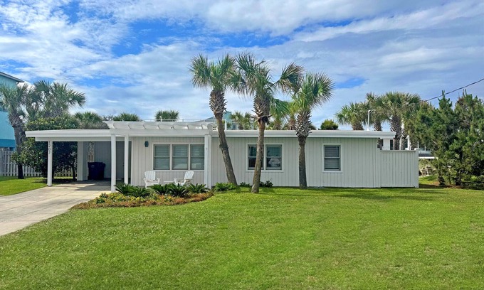 Sleeps Seven: Bedroom 1 has a king bed and enjoys access to a small private patio. Bedroom 2 has a queen bed, and bedroom 3 has a twin over full bunk bed. The hall bath has a stand-up shower, while the second bath also has a shower with a bench, and is accessible from the back patios. At the end of a sun-soaked day on the beach, there's entertainment for everyone with flat screen TVs in every bedroom and the living room! Additional amenities include: Kureig, coffee maker, Ninja blender, 2 full sets of dishes, stock pots, cast iron Dutch oven, and hot and cold water at the exterior shower.