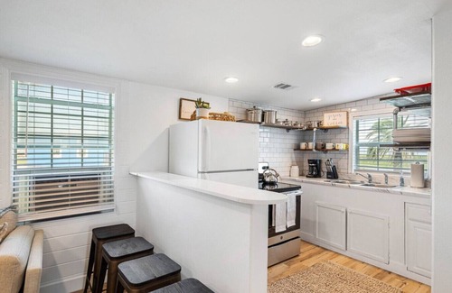 Tucked into the friendly community of Surfside Beach, this quaint beach bungalow is the laid-back oasis you’ve been searching for. When your group is ready to get sandy, the beach access point is a quick walk down the lane— simply throw a beach towel over your shoulder and go! You’ll also be conveniently close to a local shop and some delicious restaurants— consider renting a golf cart for getting around this quaint community. For a simple and tranquil Texas Gulf Coast beach vacation that truly recharges your spirit, book a stay at Wait n’ Sea.