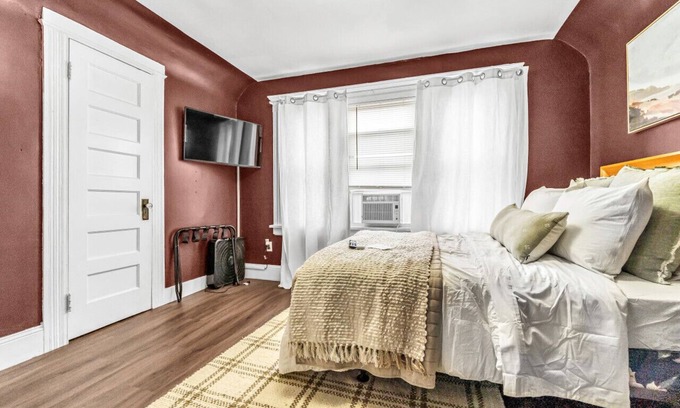 Charming bedroom near Yale Hosp/Bridgeport is located in Bridgeport. Charming bedroom near Yale Hosp/Bridgeport provides accommodation, featuring Security/Safety, Bedding/Linens, Wellness Facilities, among other amenities. This Apartment features Security/Safety, Bedding/Linens, Wellness Facilities, to make your stay a comfortable one.