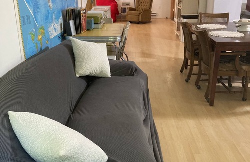 Now with high speed wifi! ATTENTION JUNE AND OCTOBER GUESTS! It will be chilly, and the only heat source is a wood burning stove. Keep that in mind when booking, thanks! Converted Pole-Barn into summer home, 12 minutes to Mack City and ferries. 10 acres all to yourself, no neighbors, fire-pits,Hawaiian bar, basketball hoop, corn hole. 2 bedrooms, queen beds. Pull-out couch in living room, 2 additional couches that people tend to sleep on. Bathroom/shower/hot water, towels, linens, pillows, hot plate, cookware, utensils, coffee maker (bring your own coffee), all the basics you might need EXCEPT heat/ac and an oven. There's a half mile trail that encircles the property. Everyone that's rented so far has loved it! Most properties this size and this close to Mackinac are pricey, so this is a great deal. It's not fancy, but it's exactly what everyone comes up north for: Relaxation, laughs around the campfire, family time. WiFi tbd due to winter storm