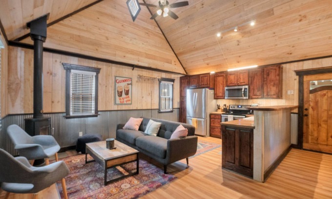 Charming cabin by Cloudland Canyon with hot tub, bonus studio & screened porch is located in Rising Fawn. Charming cabin by Cloudland Canyon with hot tub, bonus studio & screened porch provides accommodation, featuring Internet, Kitchen, Laundry, among other amenities. This Cabin features Internet, Kitchen, Laundry, to make your stay a comfortable one.