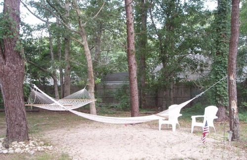 Located in South Yarmouth. This is Cabin#4 at the Yarmouth Country Cabins, 864 Route 28, South Yarmouth, Cape Cod. The cabins are set on 10 acres of land. This cabin shares an outdoor heated salt water pool, playground, games and walking trails. It is quick one mile to the beach on the ocean side of cape cod. Many restaurants are easy to walk. Bass River Sports World is a one block walk and offers mini golf, batting cages, bumper cars, arcade..so much more. The property is peaceful and nostalgic. It was built in 1939. This is family owned rental property and has hosted many families over the decades. We hope that yours will visit us soon. There are hammocks swaying over sandy knolls. Large beachsand playground and playhouse for the kids. Badmitton, ping pong, Bocci ball, Volleyball Sand Court, Bikes to borrow and nature trails to Swan Pond(now closed) Nightly bonfire for roasting marshmallows, picnic tables, bbq grills and tiki torches make the evenings fun.