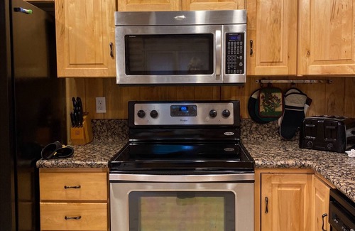 When you return, cuddle up with cocoa in front of the wood-burning fireplace and let the in-home washer/dryer take care of any laundry from the day. Spend the evening watching a DVD out of the abundant library on hand, stream the latest release, or use the free WiFi to catch up on social media. Even better, unplug entirely with a family board game or puzzle around the kitchen table. The upstairs loft also serves as an ideal source of solace. It is split into two separate sleep areas, making it perfect for the mid-day naps you crave. One bed faces a TV, so you can watch your favorite shows while you lounge. End the night with a cookout on the gas grill before drifting off to sleep in one of the comfy bedrooms or return to the loft - another day of outdoor adventures awaits tomorrow.