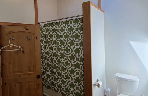 The space has a beautiful juxtaposition of hand hewn rustic beams with clean white walls. The cabin has a freshly renovated kitchen with all new cabinets and stainless steel appliances. The spacious bathroom has 10' ceilings with a skylight over the shower. There is a large wrap around porch that overlooks the valley in the front of the cabin, it has ample lighting, and is great place to watch the sunset and have a drink!